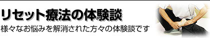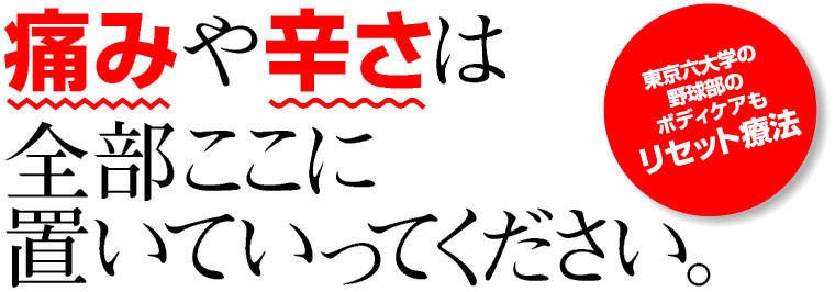 あきらめかけている、その痛み、不調… 2019年2月15日更新 |コンセプト|リセット療法とは?|こんな痛みでお悩みの方へ|リセット療法の体験談|アクセス方法|